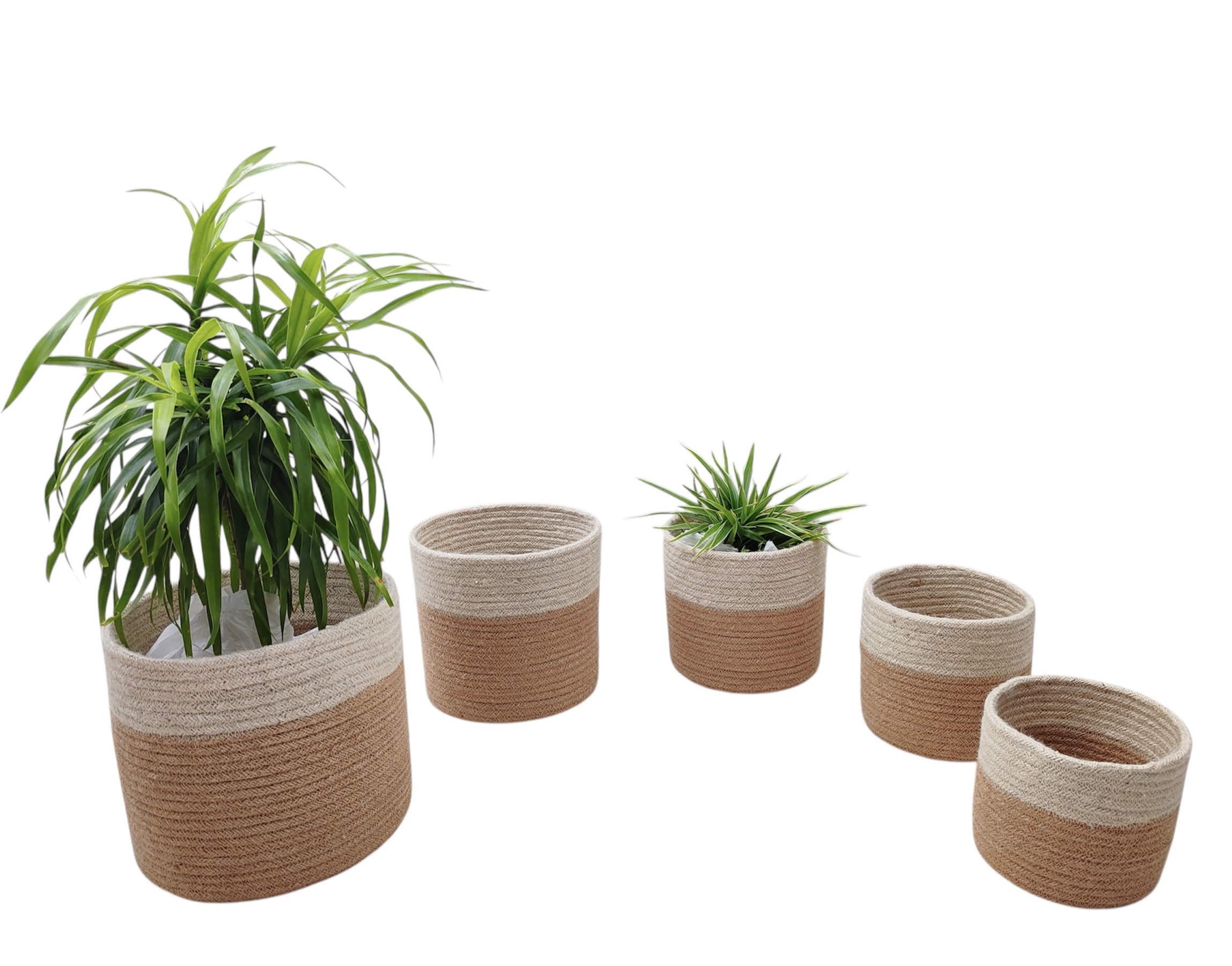 5-Piece Jute Planter Basket Set – Natural Jute with White Band